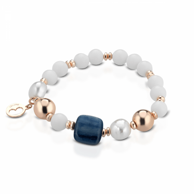 Lelune Elastic bracelet with pearls, pink hematite and silver element